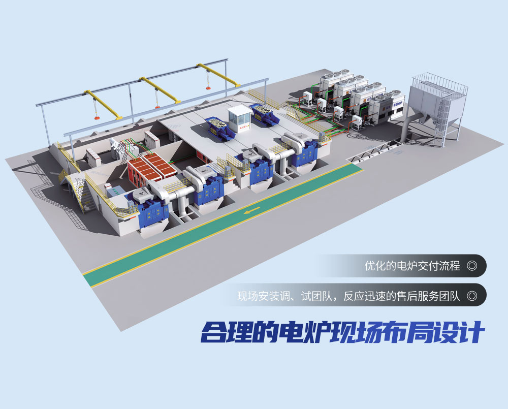 電源柜元器件布置規范合理,維修人員能很輕易地接觸到所有維修點;開放式的電爐結構設計,易于設備維護。